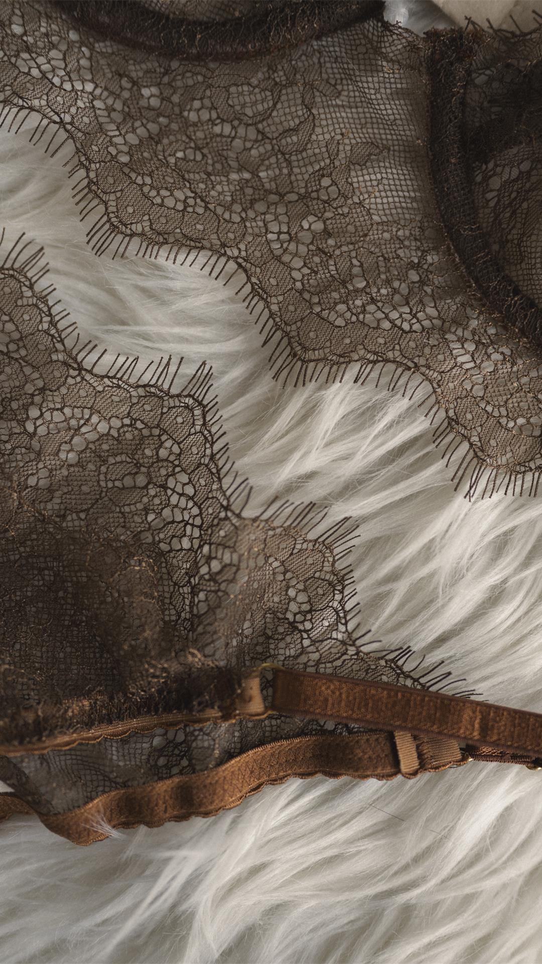 Inspired by the mighty shields of the Vikings and the graceful dryads, protectors of the forests, this chief intertwines the strength and delicacy of Nature. The brown lace, with its golden reflections, recalls the shades of wood that crackles in chimneys, warming autumn nights. A tribute to the season when Nature retreats, to regain strength, leaving room for beauty