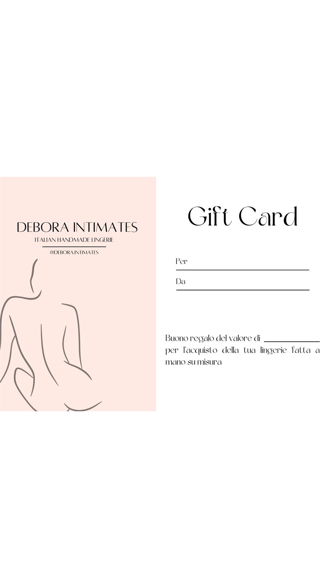 The Debora Intimates gift card is an invitation to take time and mindfully choose a handcrafted lingerie piece, created to enhance the body and the emotions of the woman who wears it.